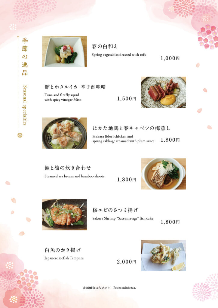 お酒の肴に季節の逸品はいかがですか。日本酒やワインにもよく合います。